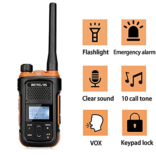Retevis RB627B Walkie Talkie Professionali, Torcia LED, PMR446 Ricetrasmittenti Ricaricabile, CTCSS/DCS, Display LCD VOX, Allarme di Emergenza, Mini Walkie Talkie per Regali (1 Pezzi, Nero)