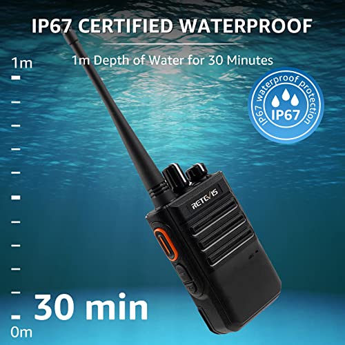 Retevis RB646 Radio a 2 Vie Impermeabile, Walkie Talkie a Lungo Raggio, PMR446 Allarme di Emergenza, Mini Radio Portatile Bidirezionale per Uso Commerciale(Nero, 6 Pezzi)