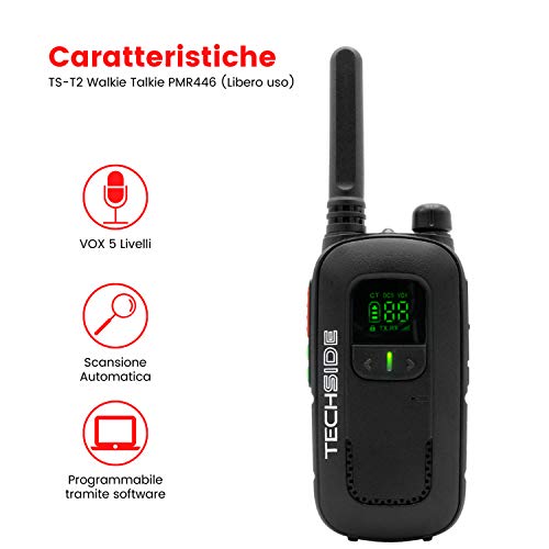 Specification: Techside TS-T2 Ricetrasmittente Professionale Walkie Talkie 16 Canali PMR446 (Libero uso) | Vox a 5 livelli | Scansione Automatica Canali | Set di 4 ricetrasmettitori full optional